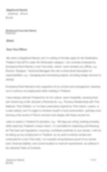 ✅ Editable cover letter templates for Remote Work, Soft Power (Muay Thai, Thai Cooking, Medical), plus spouse & children, and financial proof
